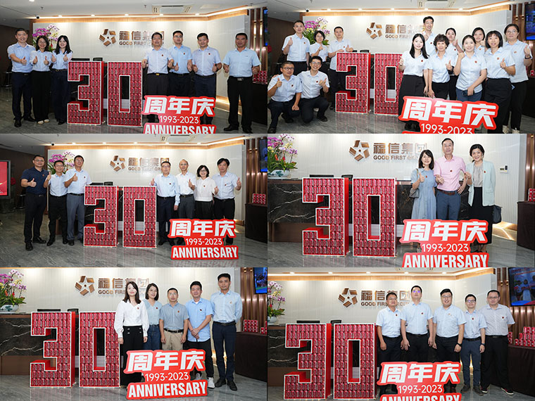 接着,简单而隆重的30周年庆典在员工食堂拉开帷幕。首先,一段视频短片《三十成就》向大家展现集团三十周年主要成就。随后,吴迪董事长发表致辞。吴董表示,三十年筚路蓝缕,经过一代代福信人的努力,福信集团已发展成包括金融、地产、科技实业及投资等多个领域的综合性民营企业,成功跻身中国民营企业500强行列,并取得多项全国以及省市层面的荣誉和来自社会各界的肯定。吴董强调,面对当下经济周期底部与转型变革主题,我们洗去征尘、卸去包袱、放下心态;面对客观不如意,适应并投身到换挡降速的新常态,不抱怨、不放弃,以三十成熟站立姿态,迈向未来。吴董还向为集团事业发展倾注汗水、智慧和青春与人生的全体同仁表示感谢,并希望全体同仁在福信继续收获事业成长和发展,共同努力创造集团更美好的未来。接着,一段视频短片《三十有我》致谢集团全员为集团三十周年添砖加瓦后,吴董向公司的创始团队成员之一、集团董事张建华颁发“30年司龄荣誉章”,感谢并致敬张总三十年的卓越贡献。最后,吴董邀请集团在厦主要领导上台共同庆生,全员唱响生日快乐歌,祝福集团三十周年生日快乐。